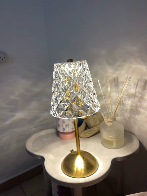 Lampe de Chevet Cristal Style Lanterne – Tactile, Variateur Progressif pour Ambiance Luxe & Cosy